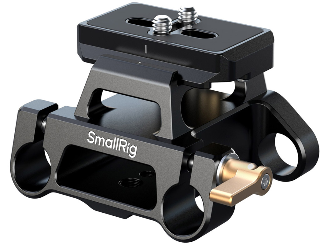 Gdyby zestaw operatorski miał być bohaterem filmu Pixara, to wyobrażam sobie pręty 15 mm jako prawą i lewą rękę głównego bohatera. Coś jak Tusk i Roll w Dawno temu w trawie, chociaż raczej stabilizujące sytuację, a nie tak szalone. Ale pozostawiając z boku metafory, zanim przejdzie się do używania prętów 15 mm, to konieczne jest ich przymocowanie do klatki operatorskiej. I tutaj z pomocą przychodzi płyta bazowa z otworami na takie rurki. Mocuje się ją do spodu klatki, tak jak przykładowo szybkozłączkę statywową.